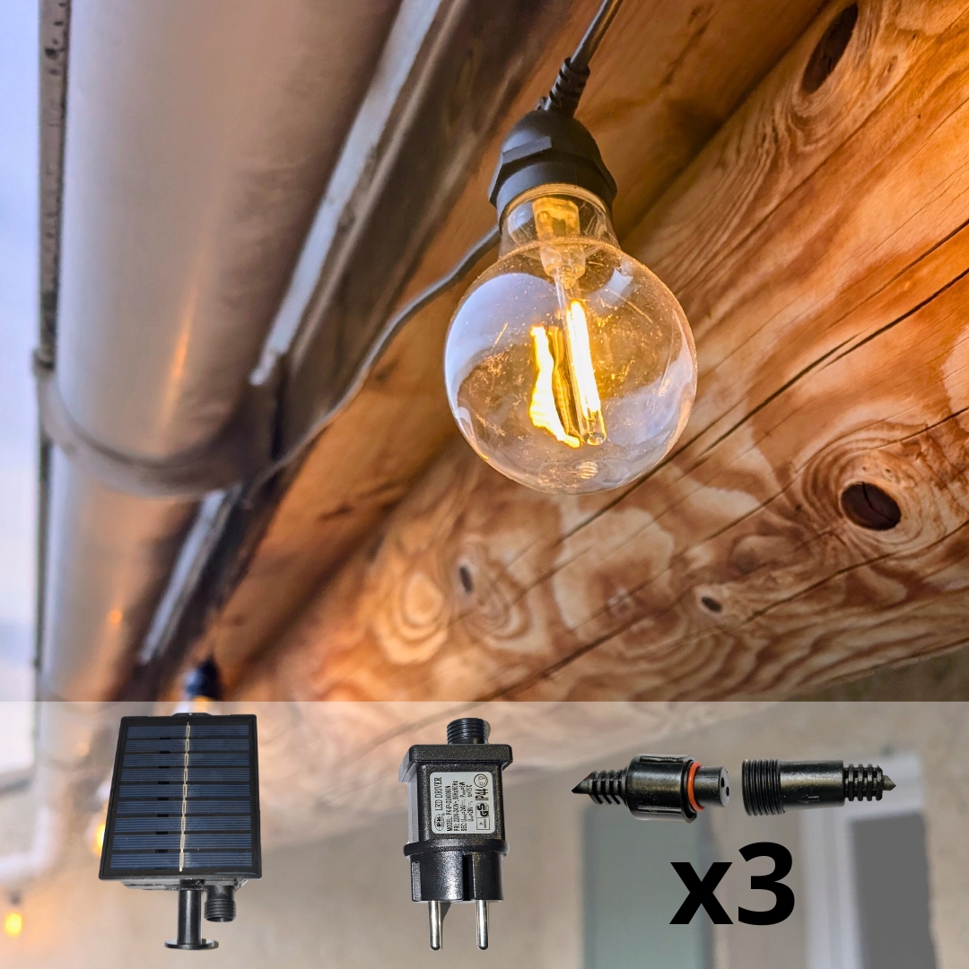 Optez pour une guirlande guinguette hybride solaire/secteur de 7,2 mètres, dotée de 10 ampoules filament LED blanc chaud pour une ambiance chaleureuse et authentique. Conçue pour un usage intérieur et extérieur, elle est connectable jusqu’à 3 fois et offre une grande flexibilité grâce à son double mode d’alimentation.
