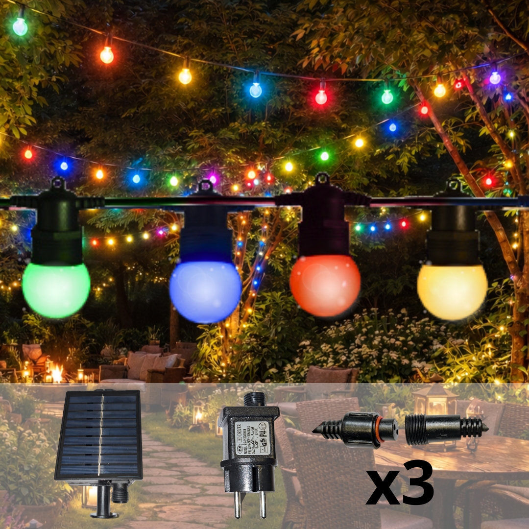 Pour magnifier vos espaces, connectez jusqu’à trois guirlandes entre elles et créez une décoration lumineuse encore plus spectaculaire. Que ce soit pour célébrer une occasion spéciale ou pour apporter une touche de gaieté à vos soirées, cette guirlande guinguette multicolore deviendra vite un indispensable pour égayer vos moments les plus précieux.