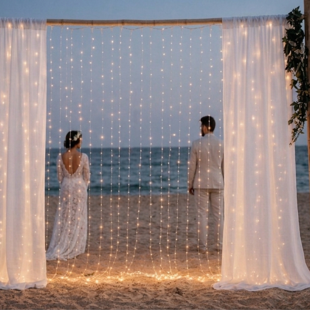 Laissez-vous séduire par l’éclat chaleureux de notre rideau LED Flash Blanc Chaud scintillant ! Ses rideaux raccordables jusqu’à 3 fois couvrent facilement de grandes surfaces avec style. Avec ses 2×2 mètres, il sublime façades, pergolas ou jardins. Parfait pour les mariages et les fêtes de Noël, il enveloppe vos soirées d’une douce lueur festive et élégante.