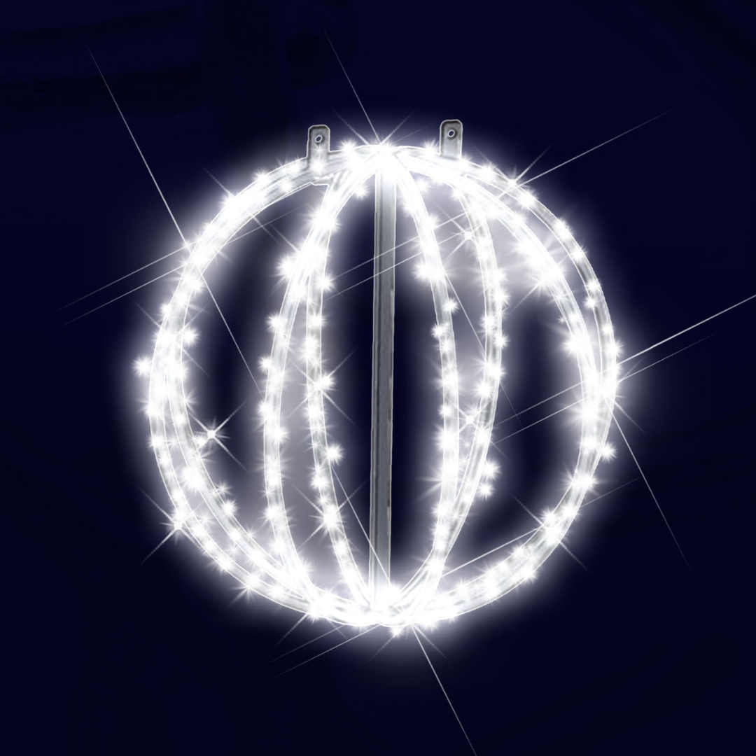 Idéale pour décorer une vitrine, une devanture de magasin, une façade, un hall d’accueil, un arbre ou encore un espace événementiel, cette sphère lumineuse s’impose comme un élément central de vos scénographies de Noël. Sa lumière blanc pur crée une atmosphère chic, apaisante et valorisante, parfaite pour attirer le regard et sublimer vos espaces professionnels.